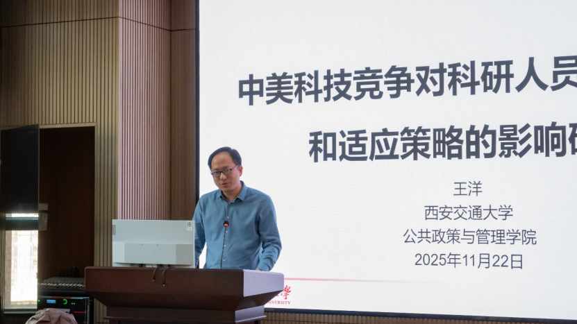 报告一由西安交通大学教授王洋主讲,题为《中美科技竞争对科研人员学术产出和适应策略的影响研究》。王洋老师聚焦于宏观地缘政治背景下的微观个体命运,通过分析学术大数据,深入探讨了中美科技合作变化及“中国行动计划”对科学家群体的影响。研究发现,“中国行动计划”对与美国科研人员有合作关系的我国学者产生了一定的负面影响;而转换研究方向虽然在一定程度上能缓解经费下降带来的冲击,但其效果因科学家的研究领域、性别及种族而存在显著差异。武汉大学赵蓉英教授在与谈中指出,该选题将宏观竞争与微观科研人员职业生涯紧密结合,数据详实,并建议未来可从学科异质性及非典型学术产出价值等角度进一步拓展。