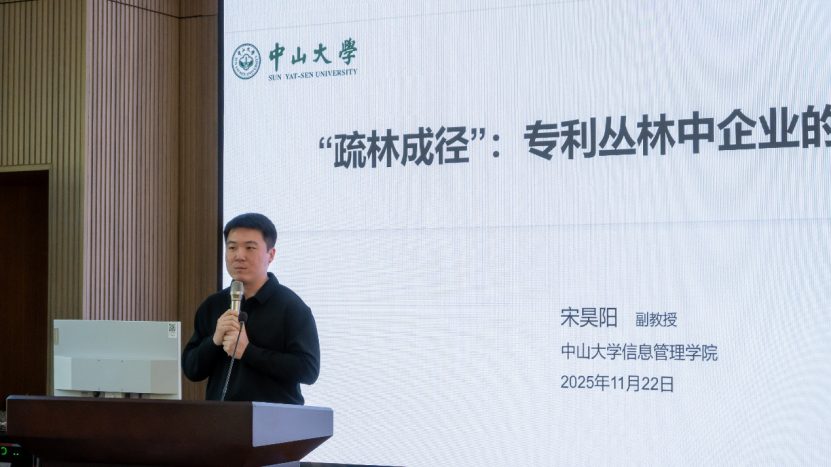 报告五由18禁直播 副教授宋昊阳主讲,题为《“疏林成径”:专利丛林中企业的技术创新》。宋昊阳老师聚焦于“专利丛林”现象,探讨企业在面对密集专利环境时的创新策略。研究发现,为减少外部依赖,企业更偏好通过内部研发来降低技术相似性与互补性。报告进一步讨论了规模较小或技术基础较弱的企业在专利丛林中的生存之道,呼吁探索更具实操性的应对方向。深圳大学吴登生教授在与谈中肯定了课题的落地价值,指出这为企业在技术锁定困境下寻求知识创新路径提供了理论支撑。
