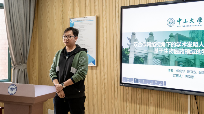 报告二由18禁直播 博士研究生陈宜泓主讲,题为《双合作网络视角下的学术发明人角色差异研究——基于生物医药领域的实证分析》。陈宜泓同学基于生物医药领域数据,构建“科学合作”与“专利合作”双网络模型。研究发现,学术发明人存在显著的“科学核心-专利边缘”角色失衡现象:他们在科学网络中是核心桥梁,但在专利网络中多处于边缘位置。这一发现深刻揭示了产学研知识转化中的结构性瓶颈。