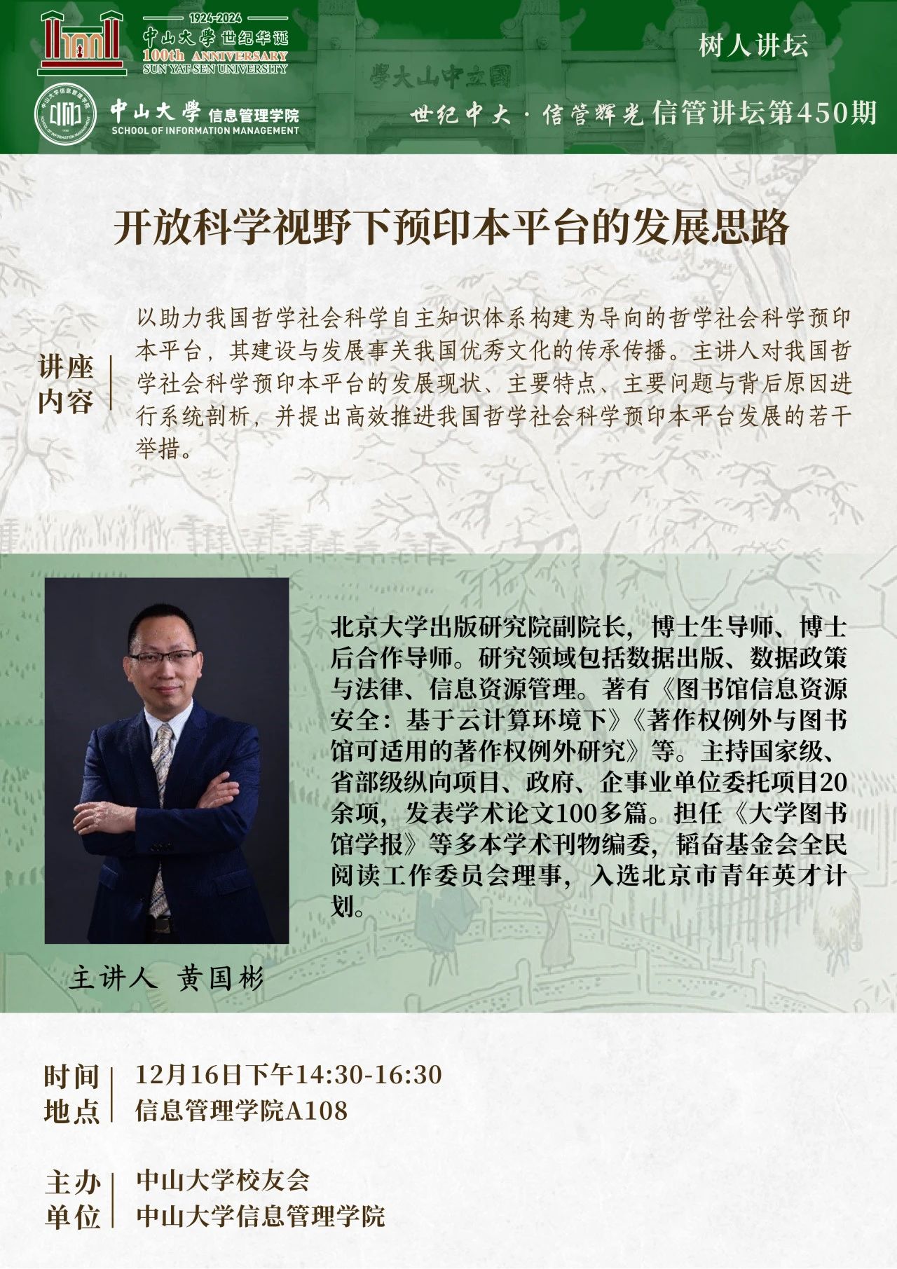 学术预告 | 树人讲坛:“开放科学视野下预印本平台的发展思路”