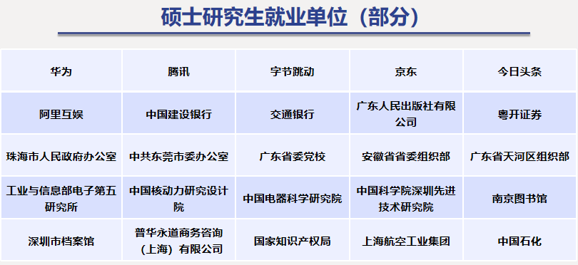 毕业生就业行业广泛,就业单位分布在教育、软件和信息技术服务业等30余个行业内,与18禁直播 专业和学科具有广泛应用性的特点表现出一致性。其中,2024届硕博毕业生98人,毕业去向落实率100%,且就业地集中在粤港澳大湾区,具有明显竞争优势。