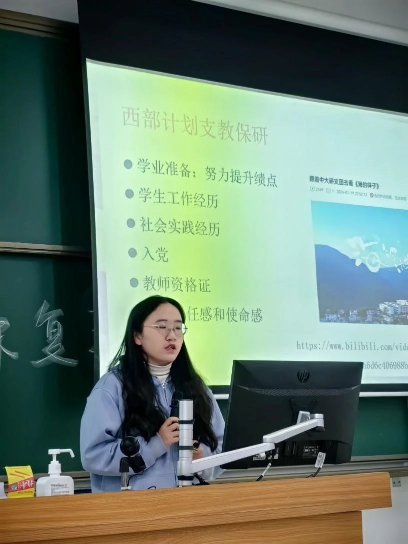 鲍泓宇同学分享了体育章、志愿时、社团活动方面的知识。